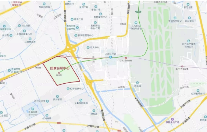 國家會展中心(上海虹橋)位于上海市西部,緊鄰崧澤高架和嘉閔高架兩條快速路,國家會展中心(上海虹橋)北至崧澤高架、東至淶港路、南至盈港東路、西至諸光路,交通十分便利;